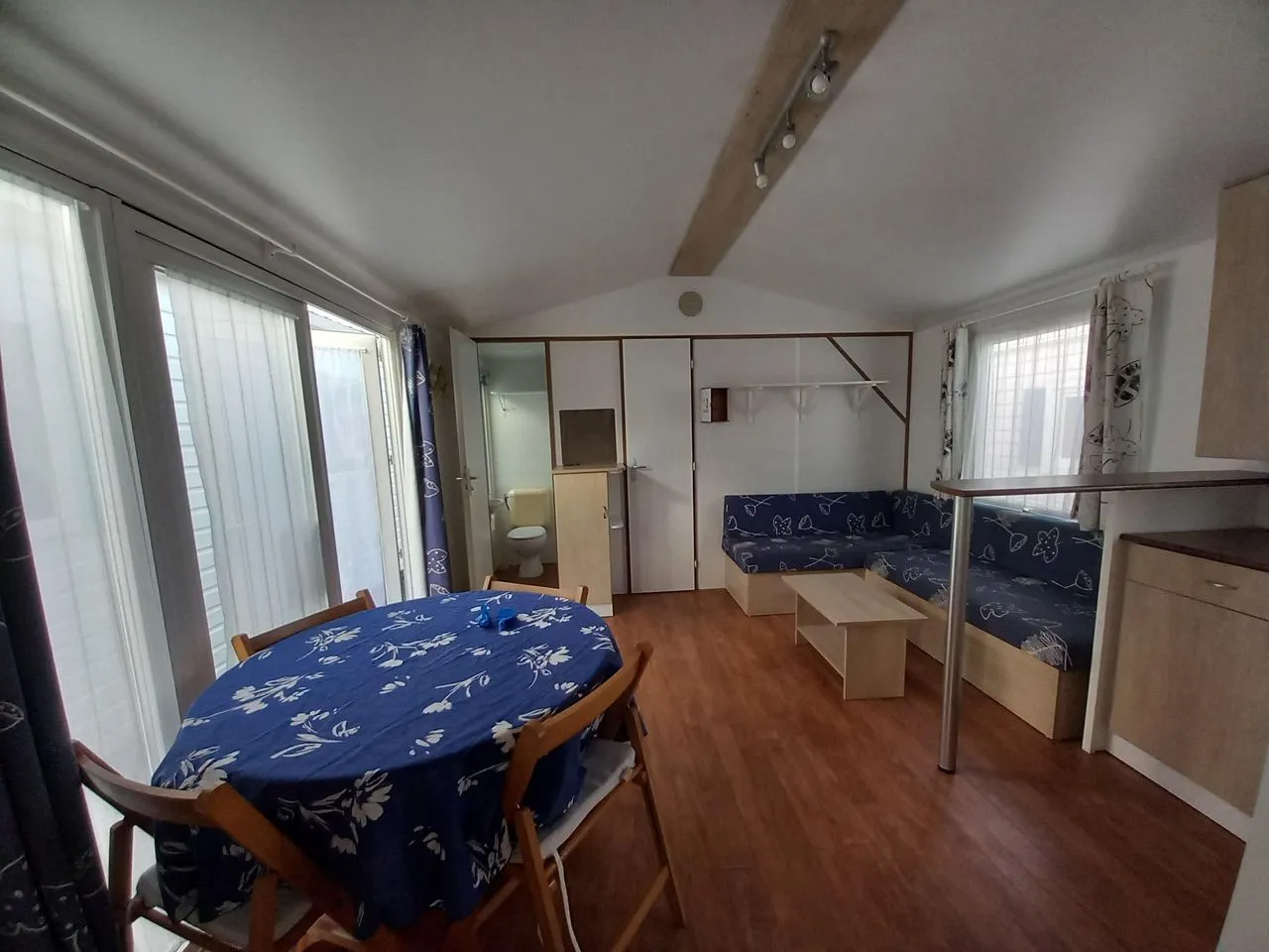 Séjour avec cuisine en U aménagée et équipée ( réfrigérateur, plaque 4 feux, hotte aspirante)